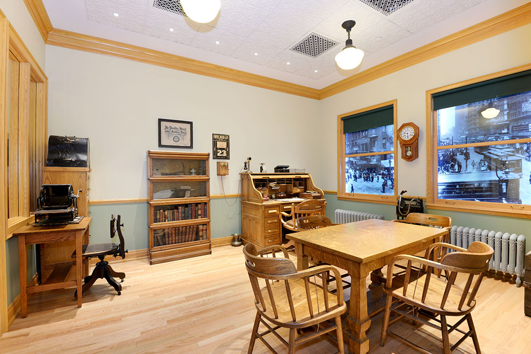 But that one club soon became dozens, and then hundreds, and finally thousands — with millions of members providing immeasurable humanitarian and civic service around the world. And as Rotary grew, Rotarians came to fully appreciate the significance of that first meeting in Loehr’s office. In 1980, the Rotary Club of Chicago rented Room 711 and gathered period furnishings and fixtures to re-create the look and feel of an early 20th-century office for Rotary’s 75th anniversary.
